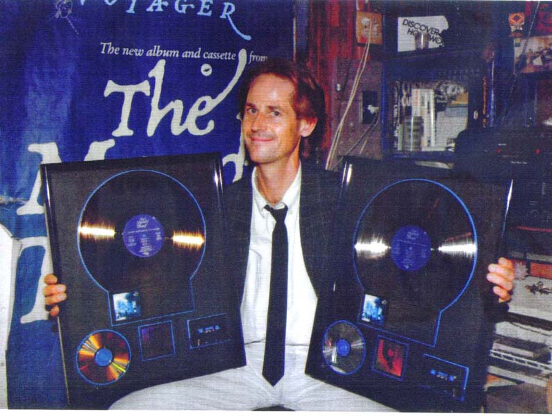 Alan displays the gold album awards recieved for The Moody Blues groundbreaking release; "Long Distance Voyager." Related: Moodies-Magazine |